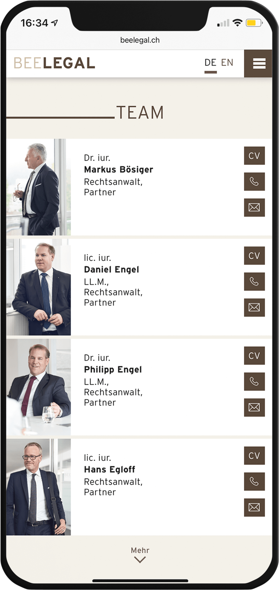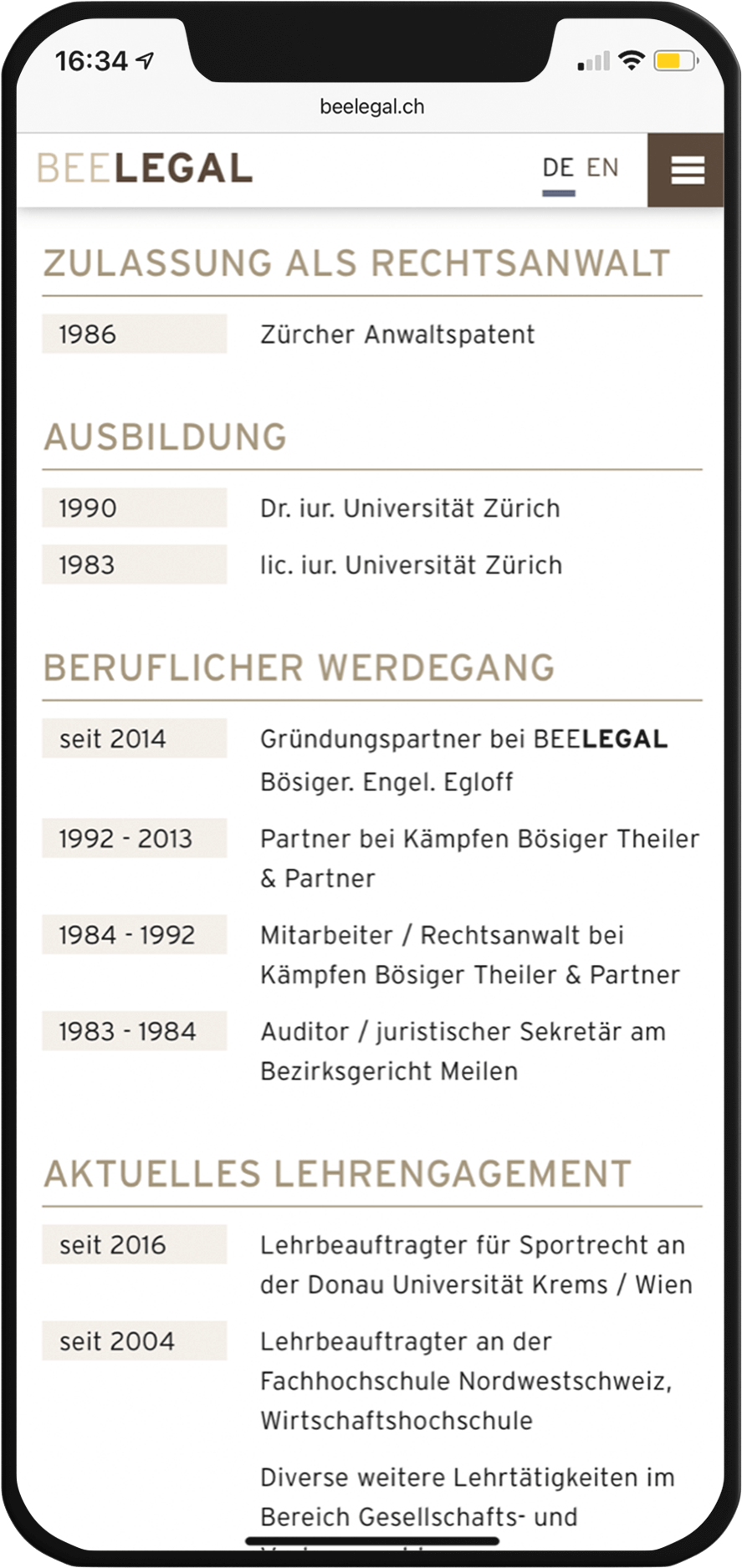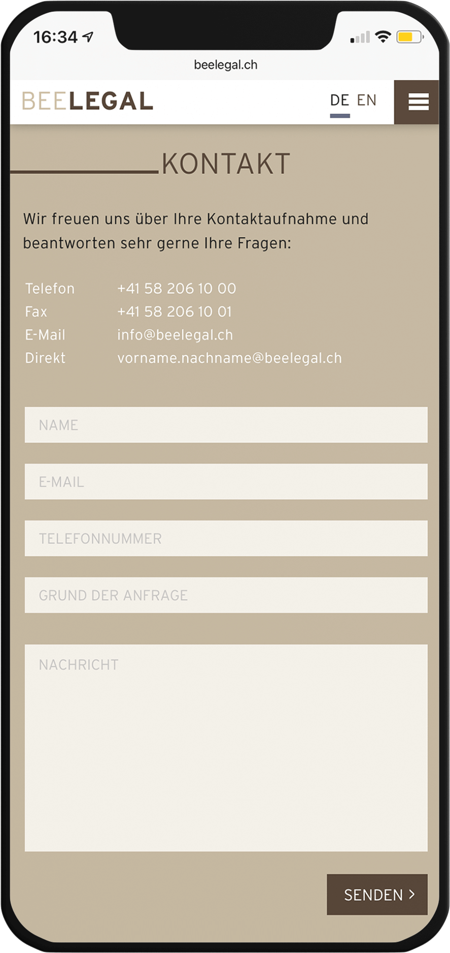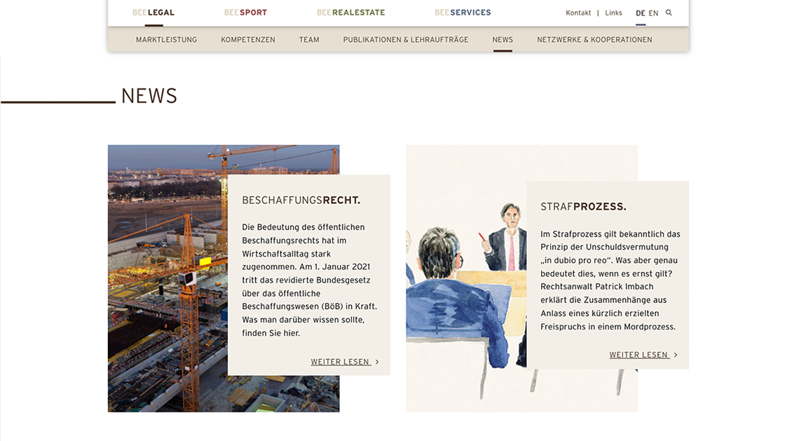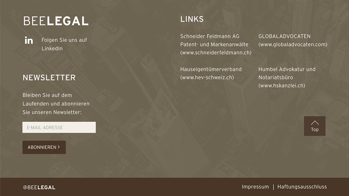 Die Farbpalette war ein wichtiger Teil des Designkonzepts. Ich verwendete Erdfarben für die Farbakzente und neutrale Hintergrundfarben. Mein Ziel war es, mit dem Farbkonzept ein klassisches Bild zu erschaffen, dass die Marke treffend repräsentiert und ein seriöses und glaubwürdiges Erscheinungsbild der Firma ermöglicht.