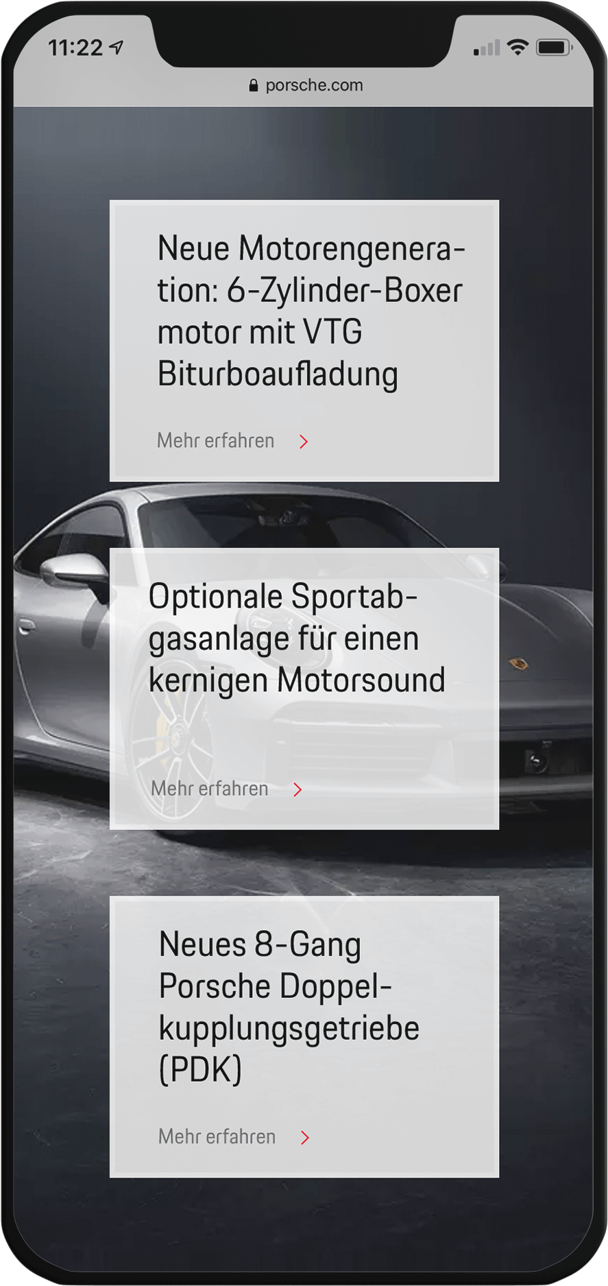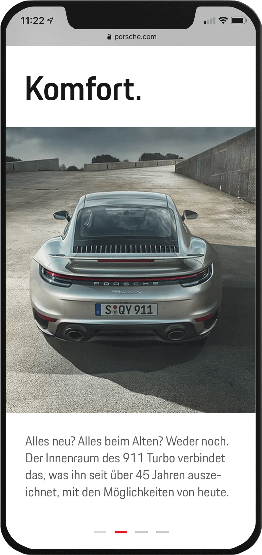 Bei Porsche Schweiz betreute ich die digitalen Kampagnen und war verantwortlich für Digital Content, Videoproduktion und UX/UI Design. Zu meinen Aufgaben gehörten die Konzeption, Gestaltung und Umsetzung digitaler Werbemittel für Social Media, Paid Ads und digitale Medien. Zudem war ich für das UX/UI Design von Websites, Landingpages und Microsites zuständig. Für Pay-per-Click-Kampagnen gestaltete ich animierte HTML-Banner mit Geolokalisierungsparametern, in enger Zusammenarbeit mit Medienagenturen, um die Performance der Kampagnen zu maximieren und die Zielgruppenansprache zu optimieren.